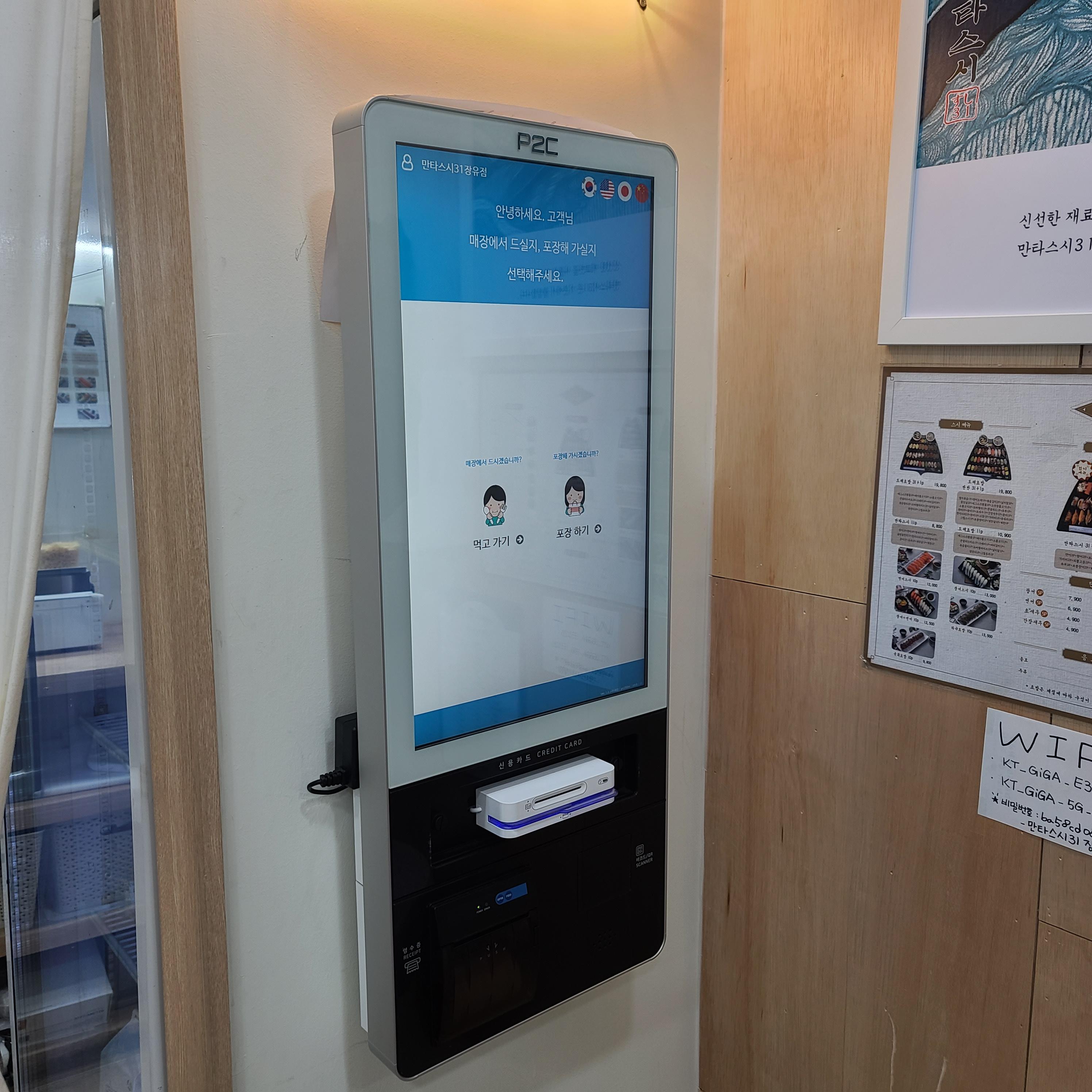 주문은 한쪽 벽면의 키오스크로 손쉽게 가능합니다!